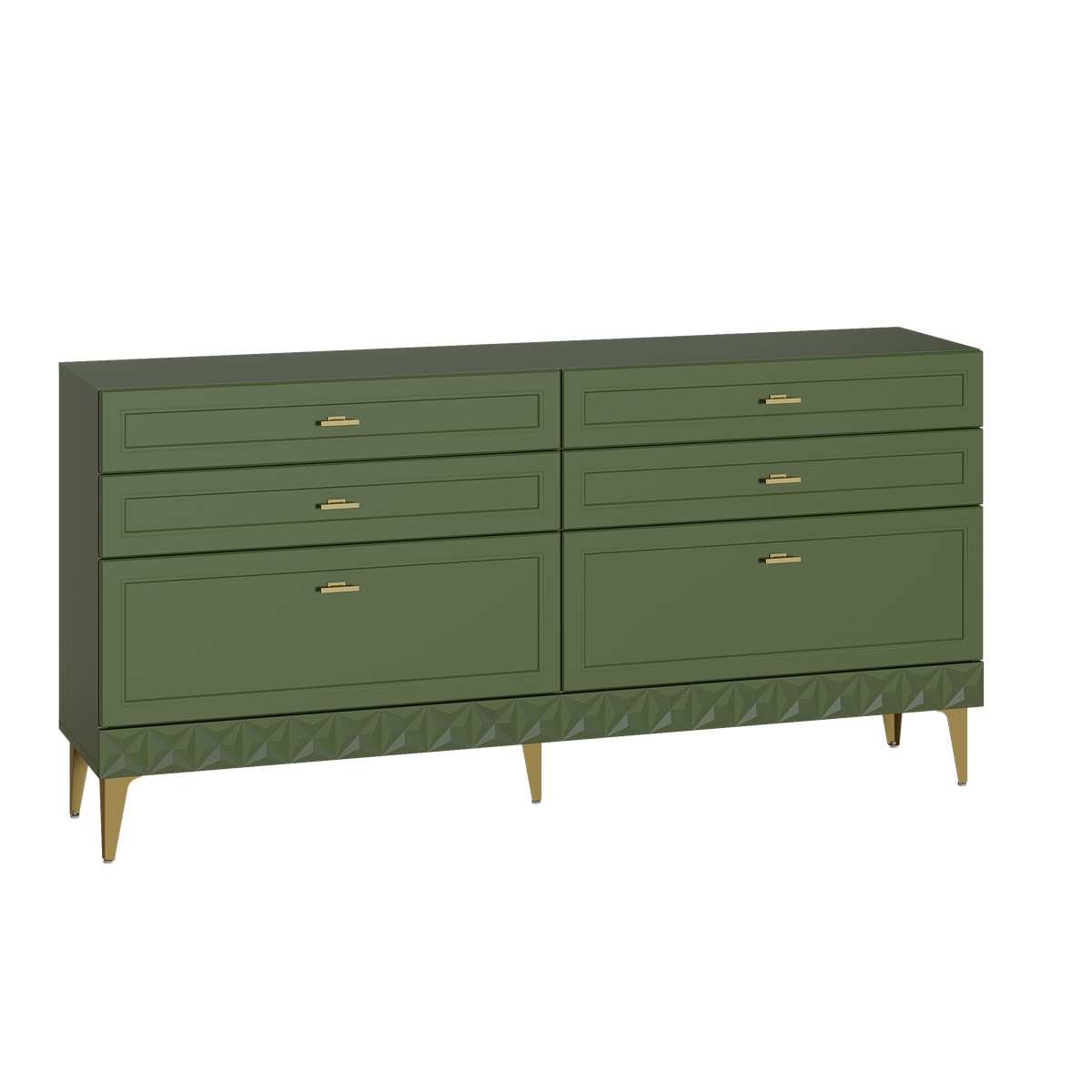 Комод Марион 16.256 дымчатый зеленый K521, олива шагрень AG 1050 ПВХ, белый PE шагрень