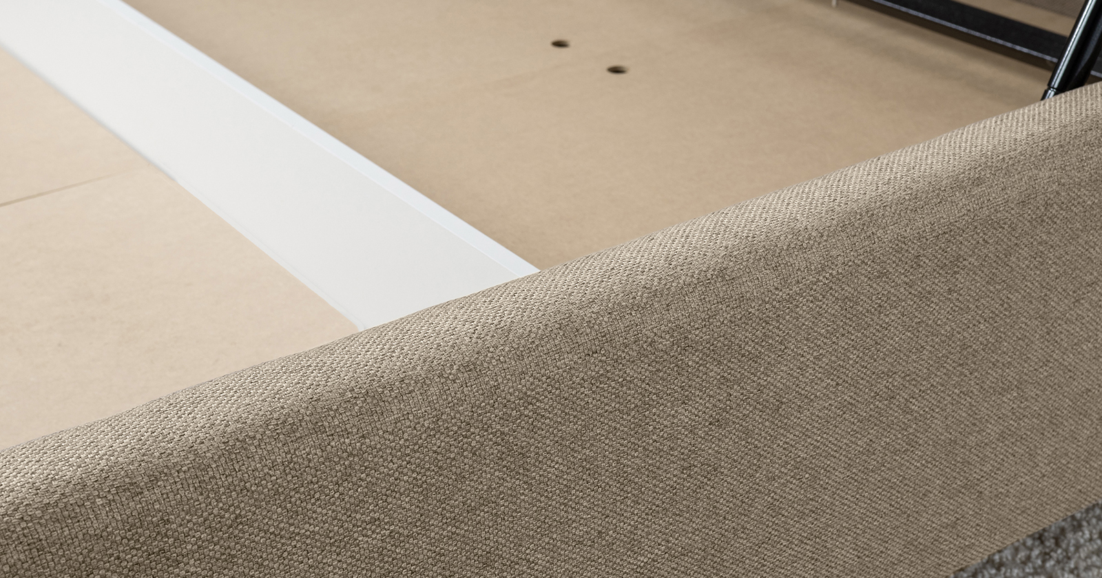 Кровать Миа 180 светло-бежевый, кант желтовато-коричневый с ортопедическим основанием и подъемным механизмом