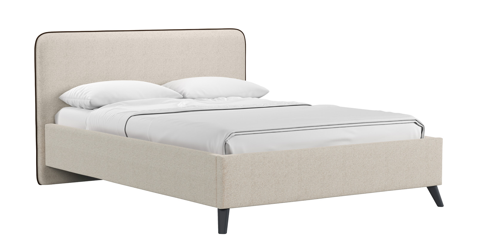 Кровать Миа 140 рогожка светло-бежевый, кант желтовато-коричневый с ортопедическим основанием и подъемным механизмом