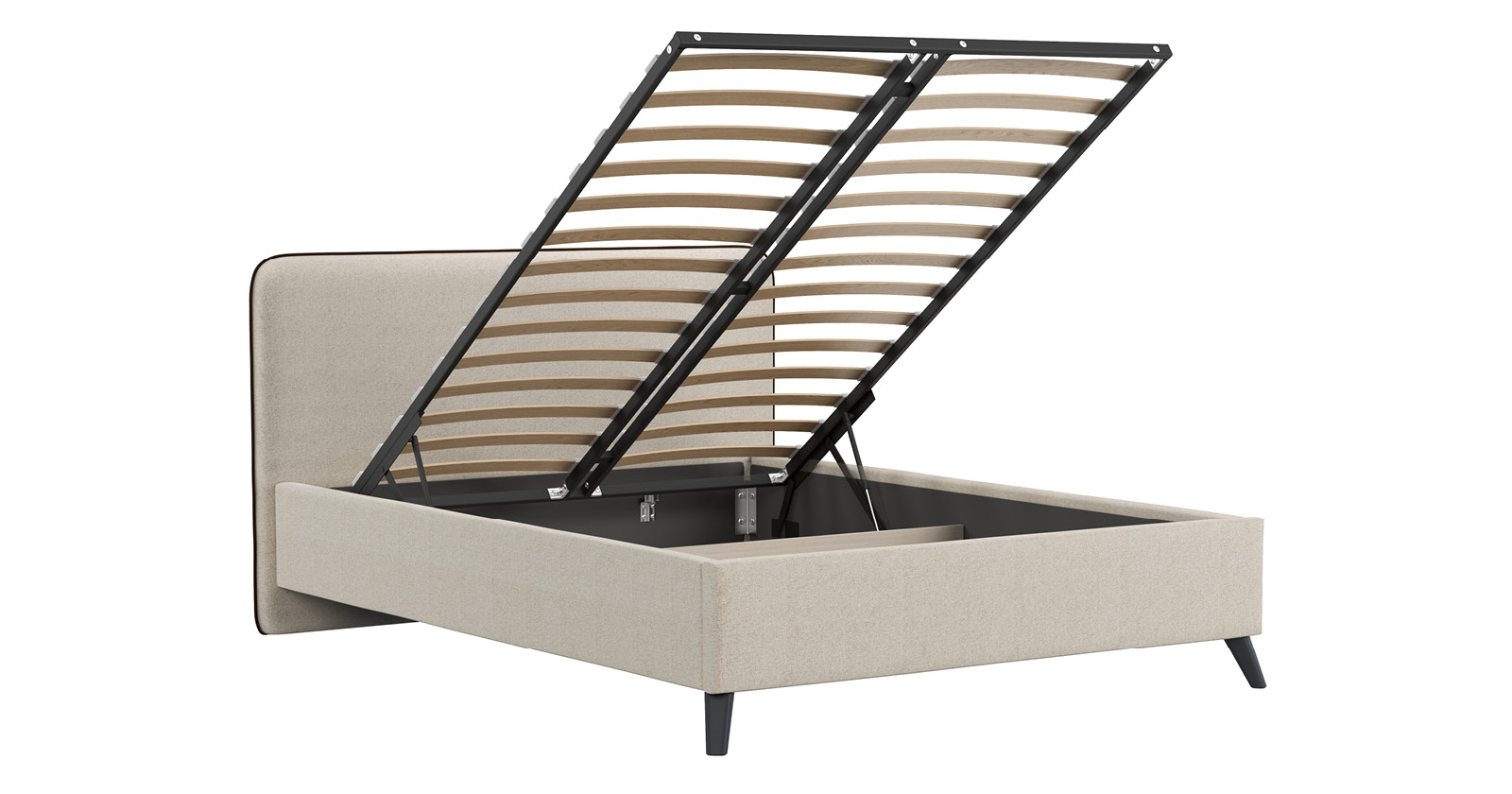 Кровать Миа 180 светло-бежевый, кант желтовато-коричневый с ортопедическим основанием и подъемным механизмом