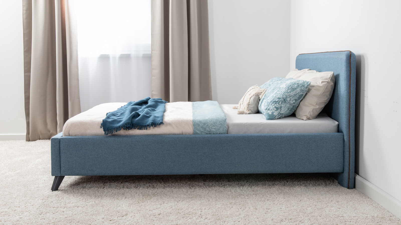 Лаконичный дизайн, гладкая и приятная на ощупь рогожка, широкий выбор пастельных оттенков, высокие опоры — модная кровать МИА порадует сторонников скандинавского стиля.