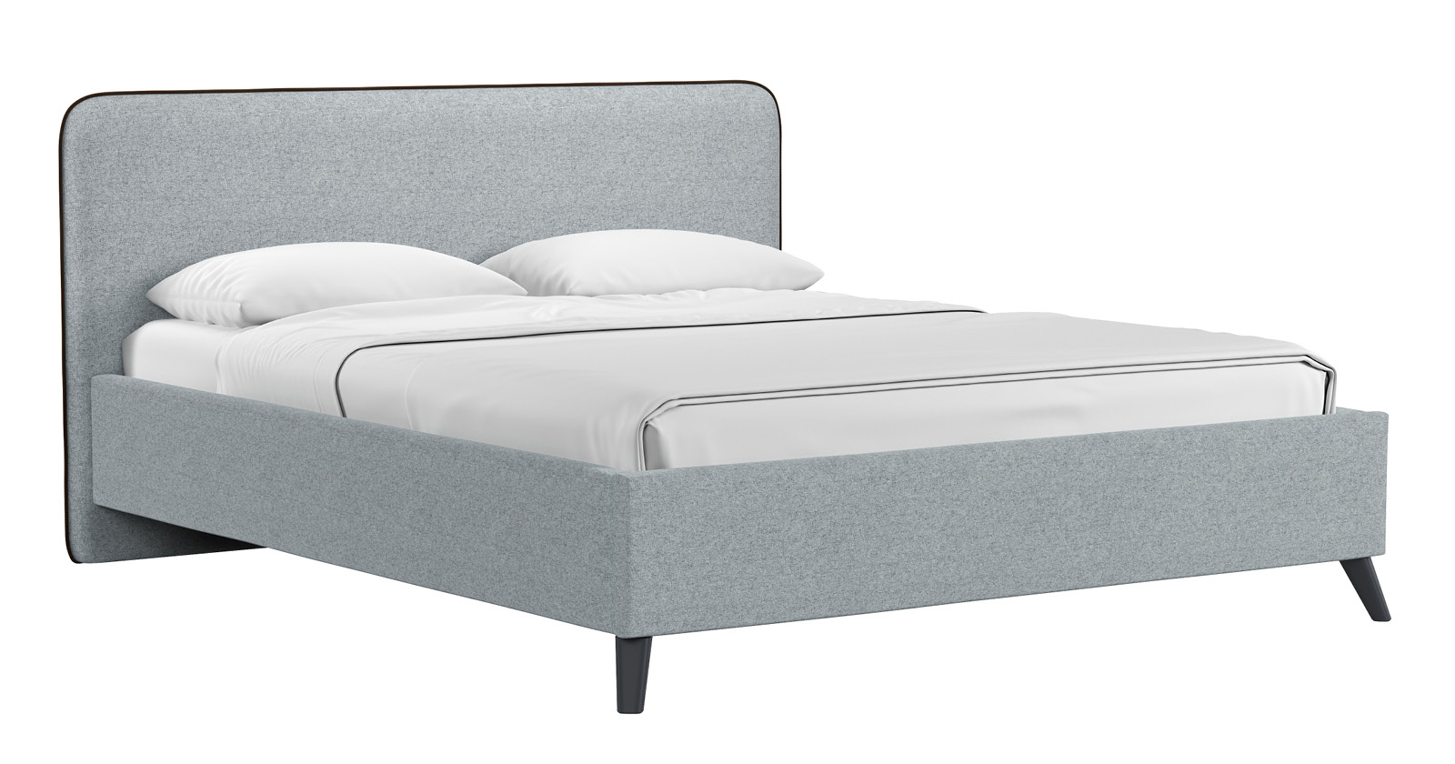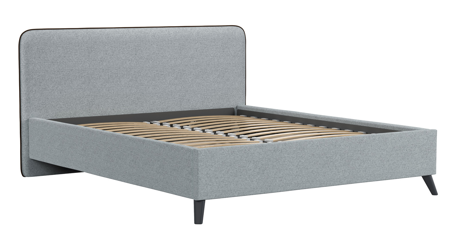 Кровать Миа 160 рогожка серый, кант желтовато-коричневый с ортопедическим основанием и подъемным механизмом