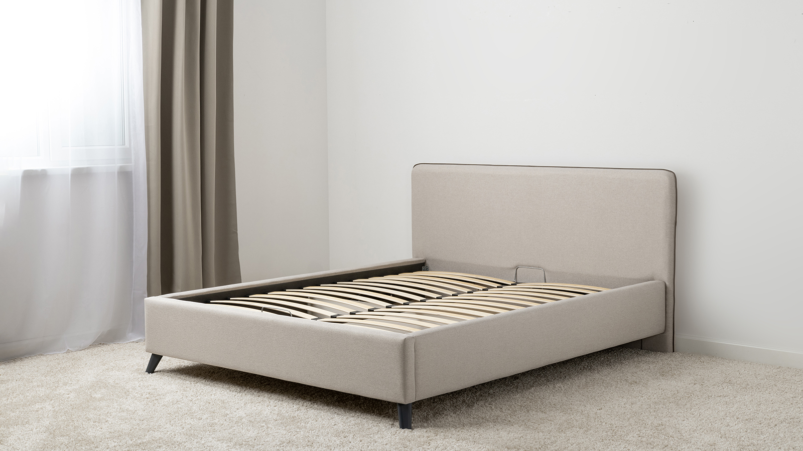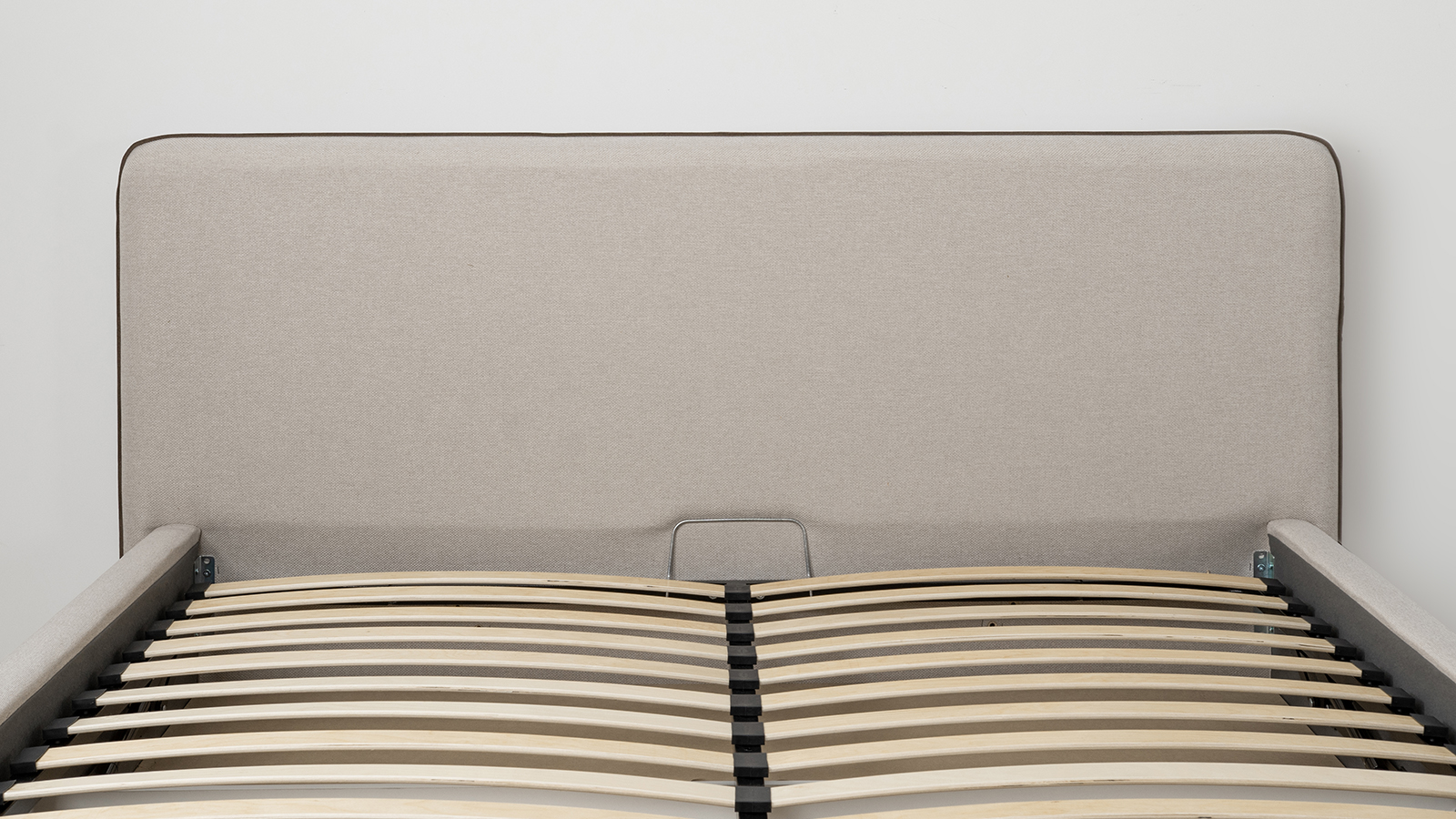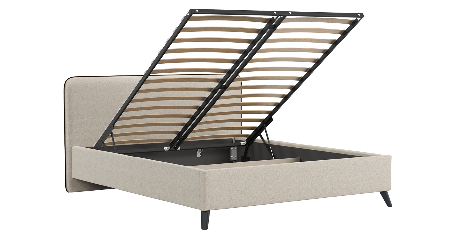 Кровать Миа 180 светло-бежевый, кант желтовато-коричневый с ортопедическим основанием и подъемным механизмом