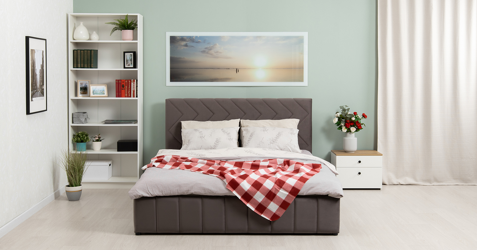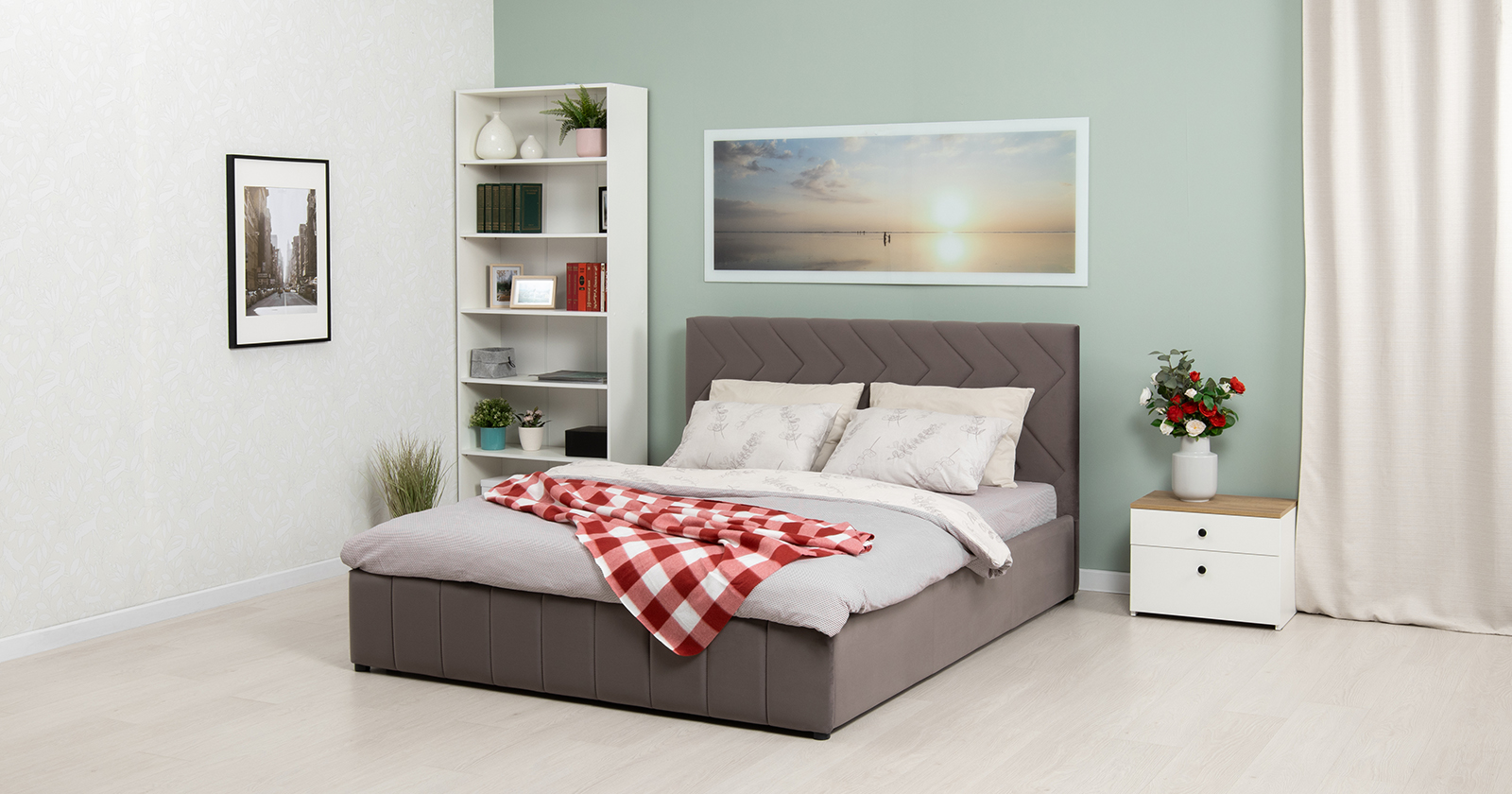 Кровать Милана 160 велюр серо-коричневый с ортопедическим основанием и подъемным механизмом