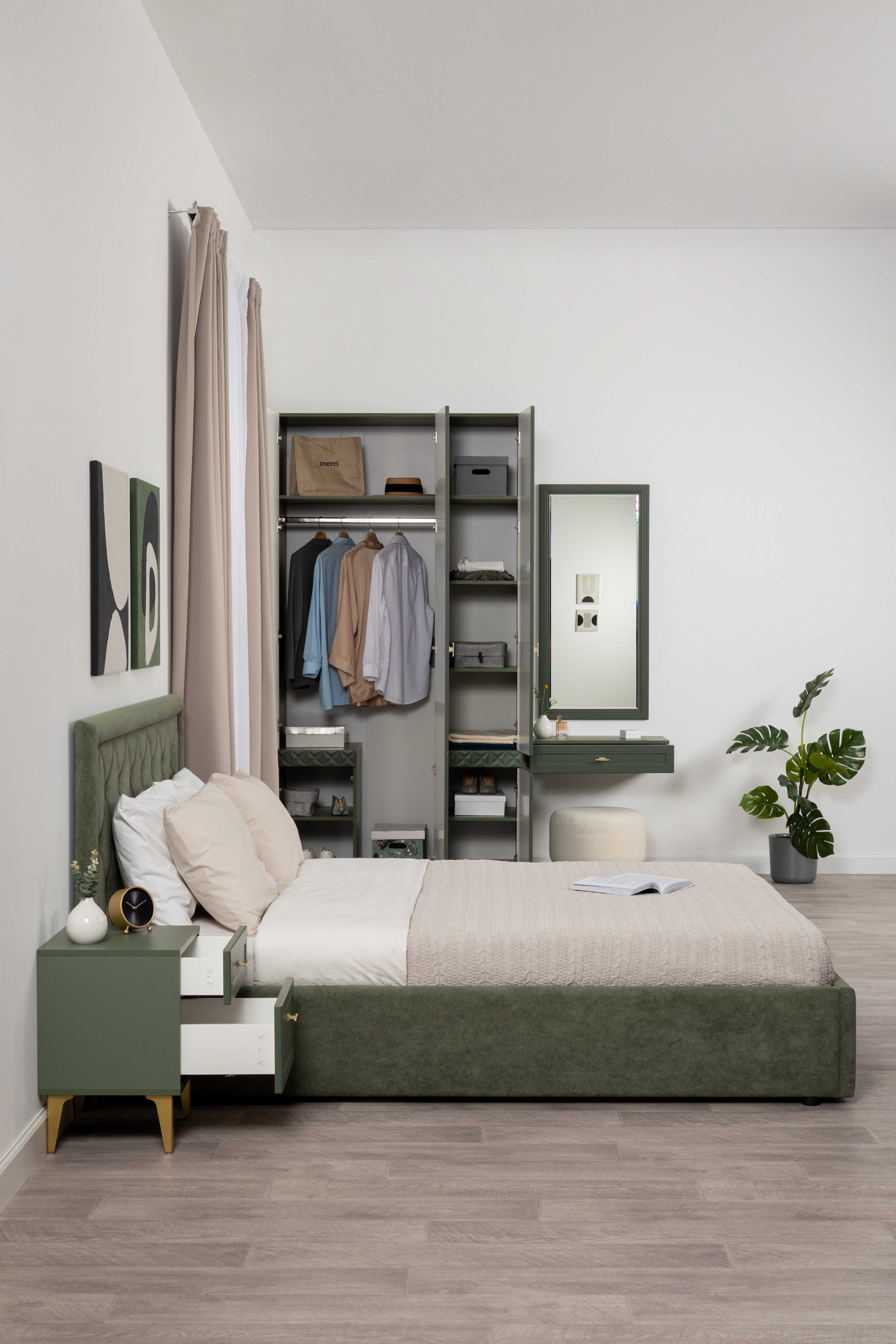 Тумба прикроватная Марион 16.14 дымчатый зеленый K521, олива шагрень AG 1050 ПВХ, белый PE шагрень